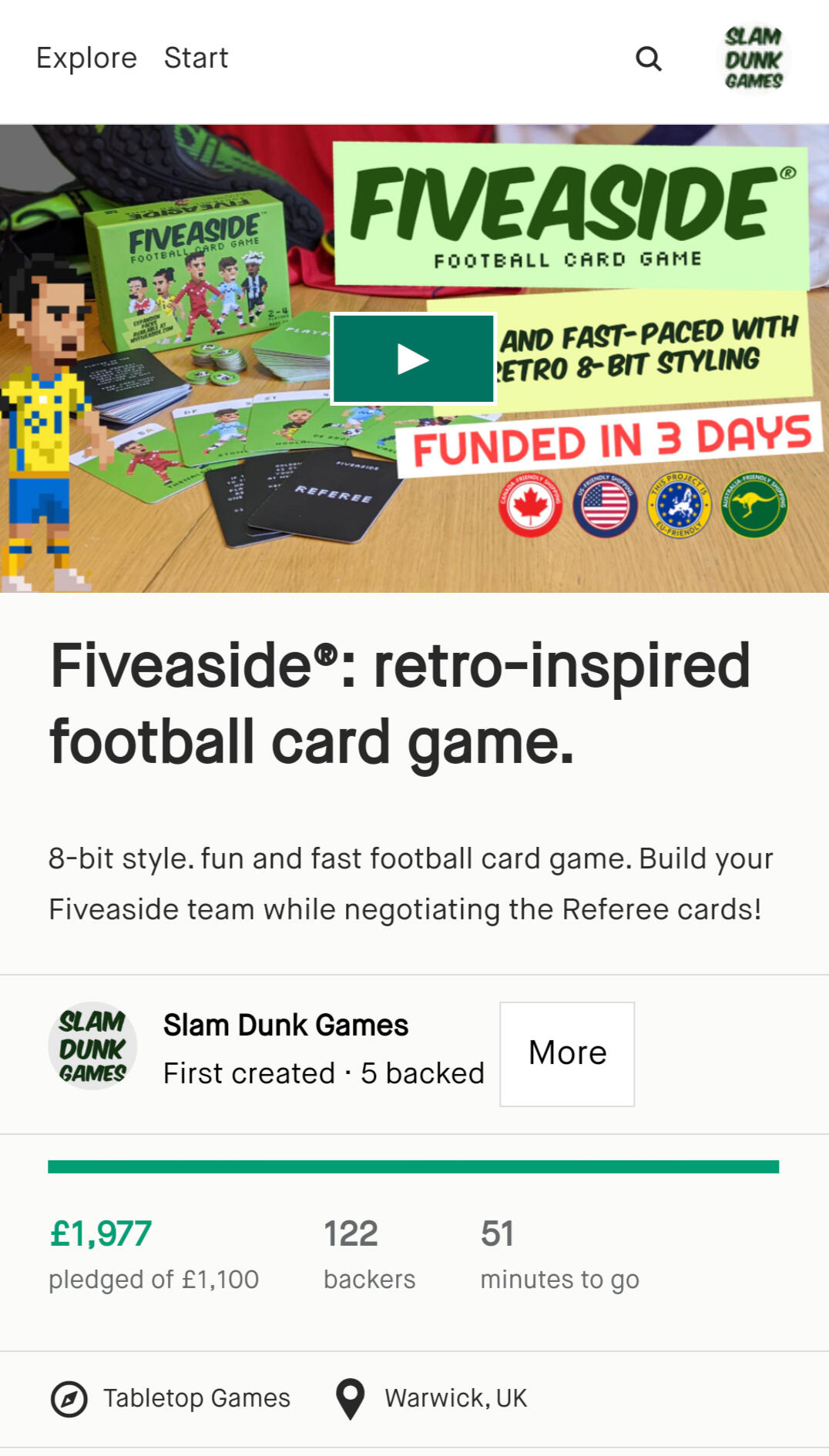 End-to-end creative and product launch of an 8-bit inspired football game. Crowdfunding certainly isn't a case of 'build it and they will come', many hours spent working the socials, appearing on podcasts and engaging in forums. Successfully funded and the real product is in 10+ countries around the World.How it supplements my career/knowledge: